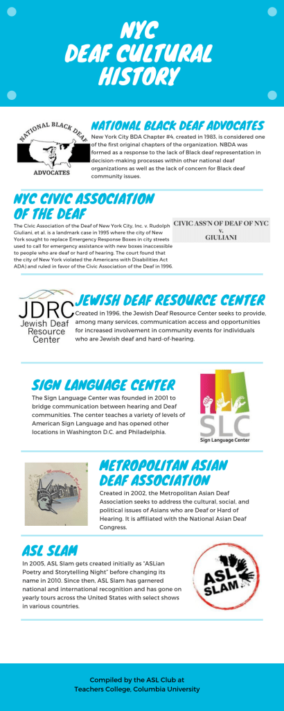 NYC Deaf Cultural History nycdeafhistoryOctober 7, 2019Uncategorized Post navigation PreviousNext Share this: Share on X (Opens in new window) X Share on Facebook (Opens in new window) Facebook Like Loading... Related