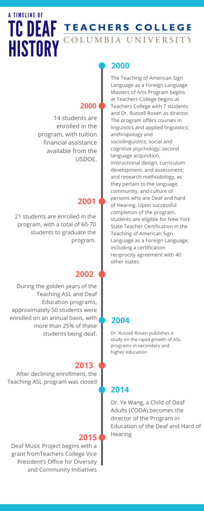 Teachers College Deaf Education nycdeafhistoryOctober 7, 2019June 20, 2025Uncategorized Post navigation Previous Share this: Click to share on X (Opens in new window) X Click to share on Facebook (Opens in new window) Facebook Like Loading... Related